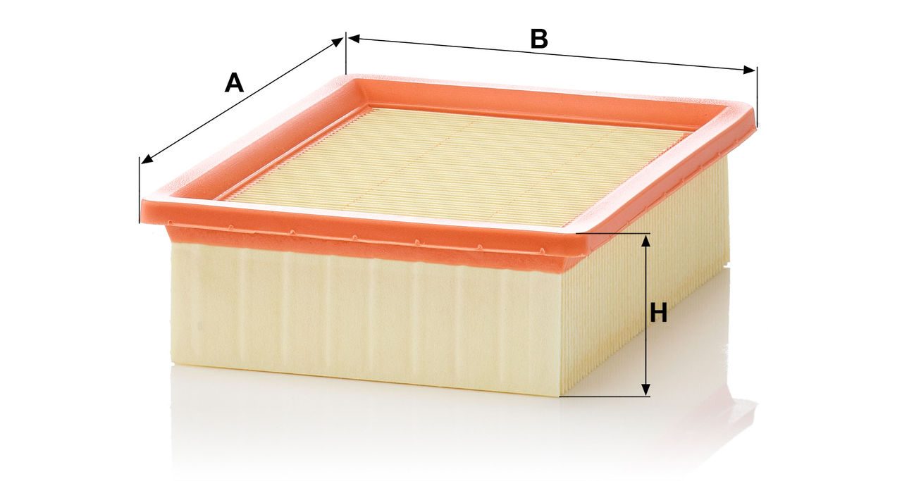 High-quality MANN-FILTER air filters for clean air intake and optimum protection for your engine, mass air flow sensor & other sensitive components / They meet requirements of modern engine technology. Highest dirt holding capacity and dirt separation efficiency, low flow resistance and high pleat stability ensure functional reliability during the entire service interval.