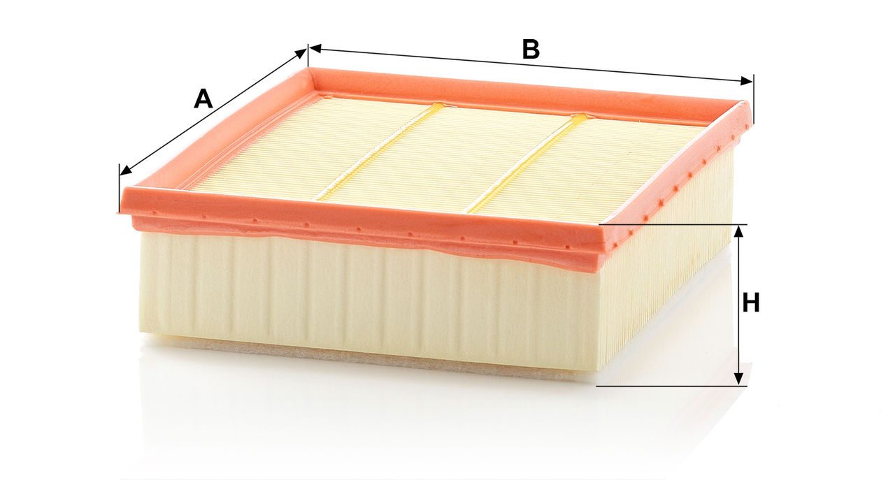 High-quality MANN-FILTER air filters for clean air intake and optimum protection for your engine, mass air flow sensor & other sensitive components / They meet requirements of modern engine technology. Highest dirt holding capacity and dirt separation efficiency, low flow resistance and high pleat stability ensure functional reliability during the entire service interval.