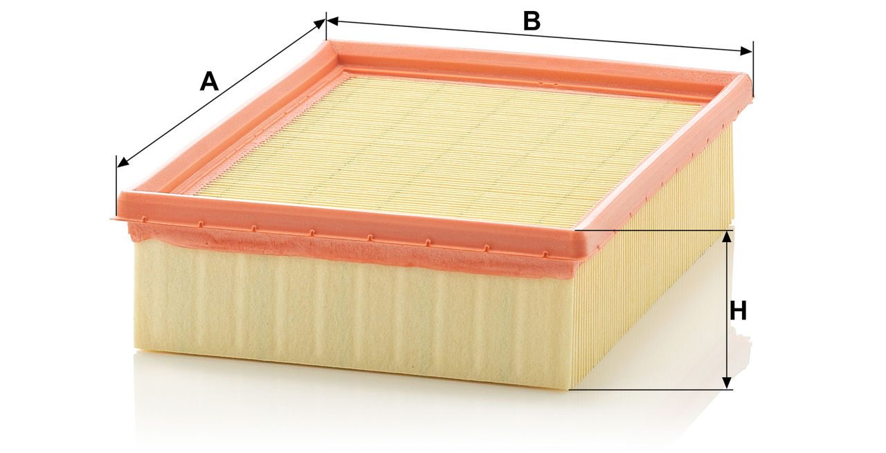 High-quality MANN-FILTER air filters for clean air intake and optimum protection for your engine, mass air flow sensor & other sensitive components / They meet requirements of modern engine technology. Highest dirt holding capacity and dirt separation efficiency, low flow resistance and high pleat stability ensure functional reliability during the entire service interval.