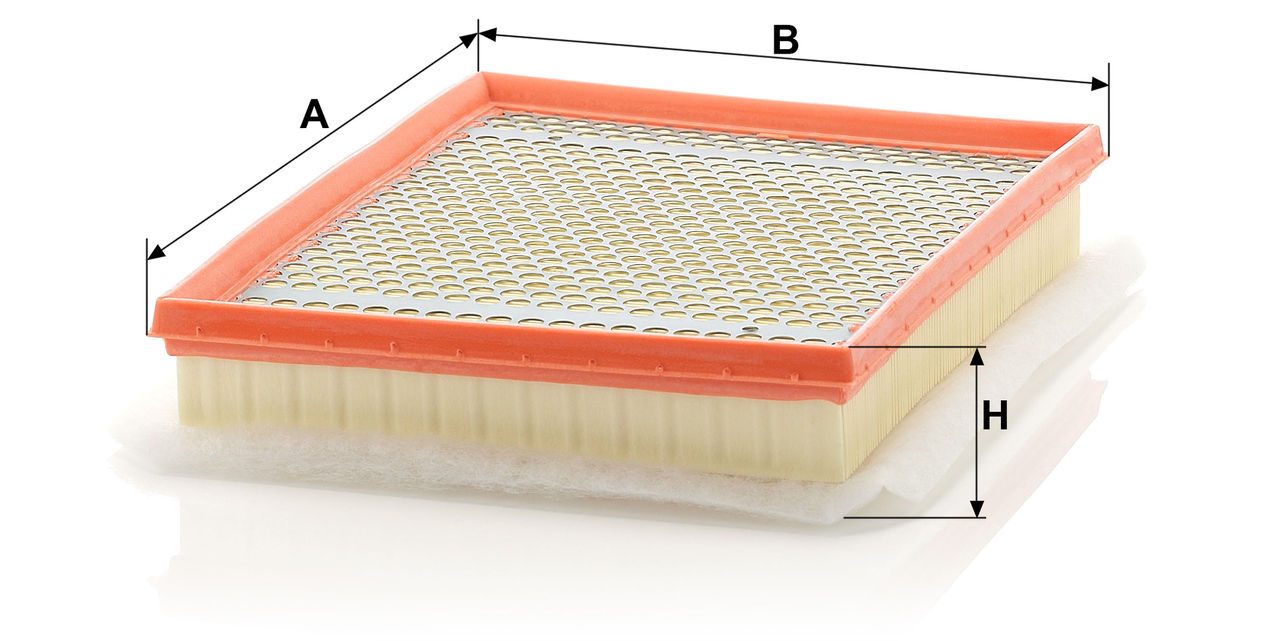 High-quality MANN-FILTER air filters for clean air intake and optimum protection for your engine, mass air flow sensor & other sensitive components / They meet requirements of modern engine technology. Highest dirt holding capacity and dirt separation efficiency, low flow resistance and high pleat stability ensure functional reliability during the entire service interval.