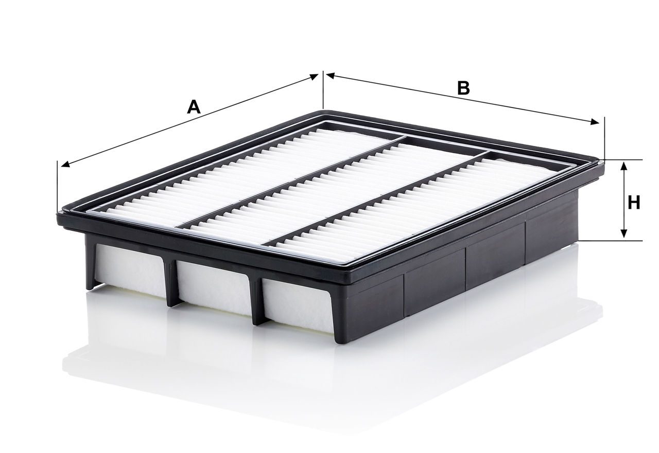 High-quality MANN-FILTER air filters for clean air intake and optimum protection for your engine, mass air flow sensor & other sensitive components / They meet requirements of modern engine technology. Highest dirt holding capacity and dirt separation efficiency, low flow resistance and high pleat stability ensure functional reliability during the entire service interval.