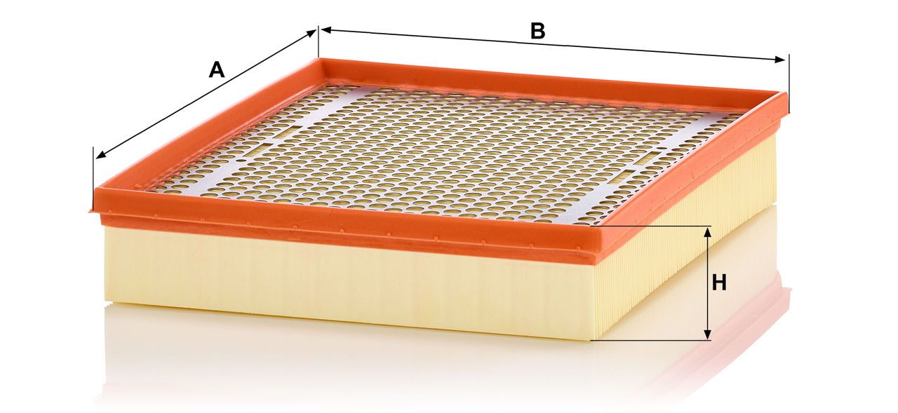 High-quality MANN-FILTER air filters for clean air intake and optimum protection for your engine, mass air flow sensor & other sensitive components / They meet requirements of modern engine technology. Highest dirt holding capacity and dirt separation efficiency, low flow resistance and high pleat stability ensure functional reliability during the entire service interval.