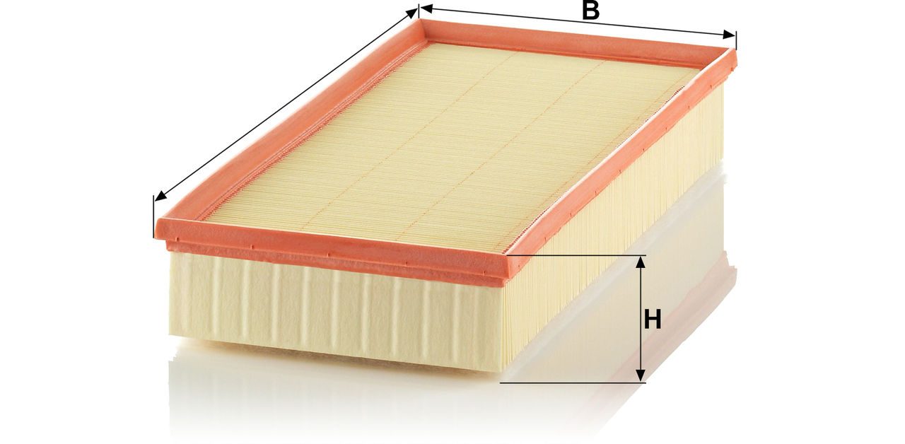 High-quality MANN-FILTER air filters for clean air intake and optimum protection for your engine, mass air flow sensor & other sensitive components / They meet requirements of modern engine technology. Highest dirt holding capacity and dirt separation efficiency, low flow resistance and high pleat stability ensure functional reliability during the entire service interval.