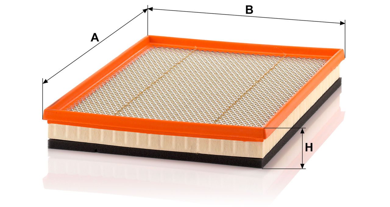High-quality MANN-FILTER air filters for clean air intake and optimum protection for your engine, mass air flow sensor & other sensitive components / They meet requirements of modern engine technology. Highest dirt holding capacity and dirt separation efficiency, low flow resistance and high pleat stability ensure functional reliability during the entire service interval.