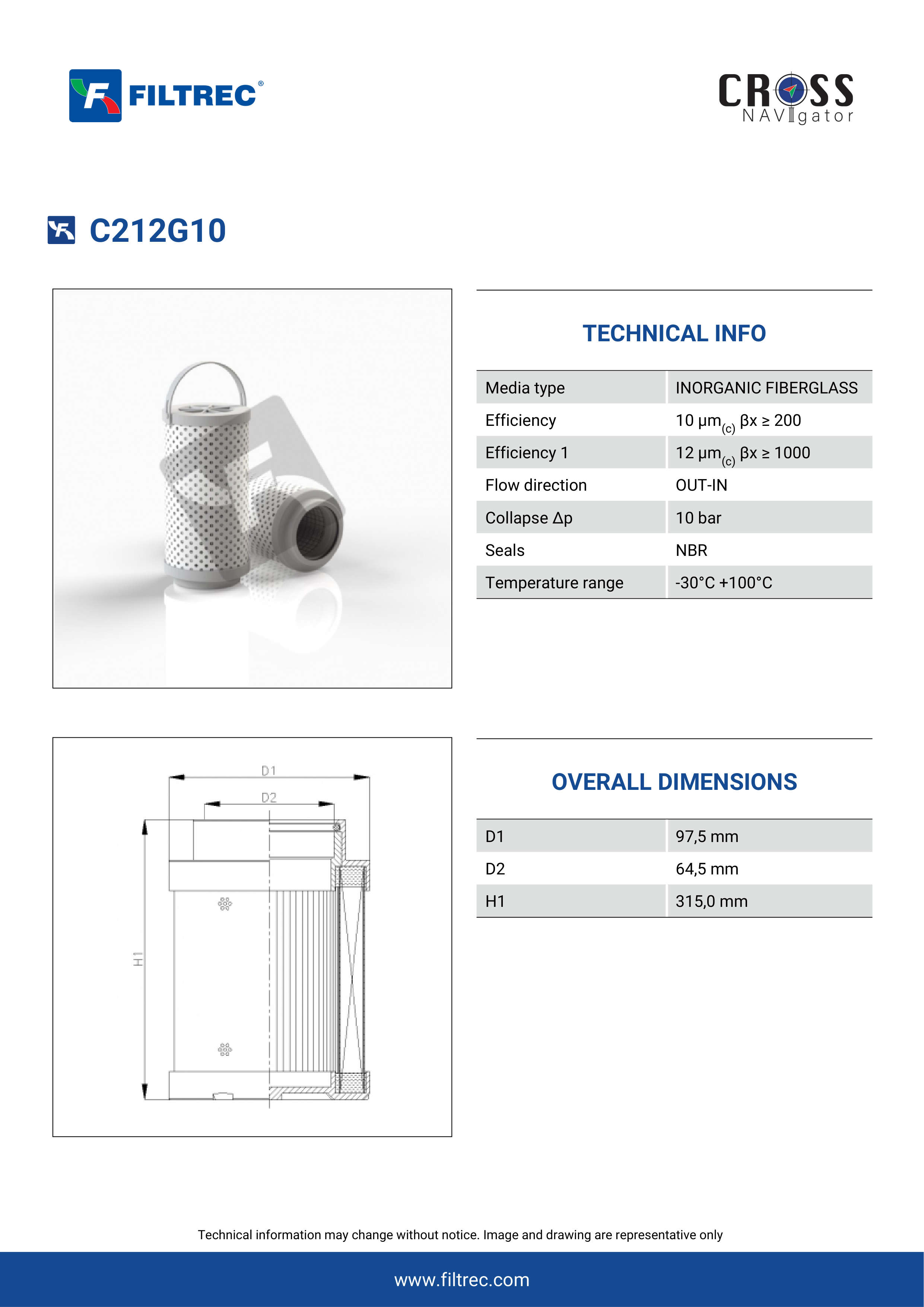 Genuine Filtrec C212G10. This Filtrec element is designed to meet or exceed the quality and performance of brand OEM’s ensuring superior filtration performance and long-lasting durability.