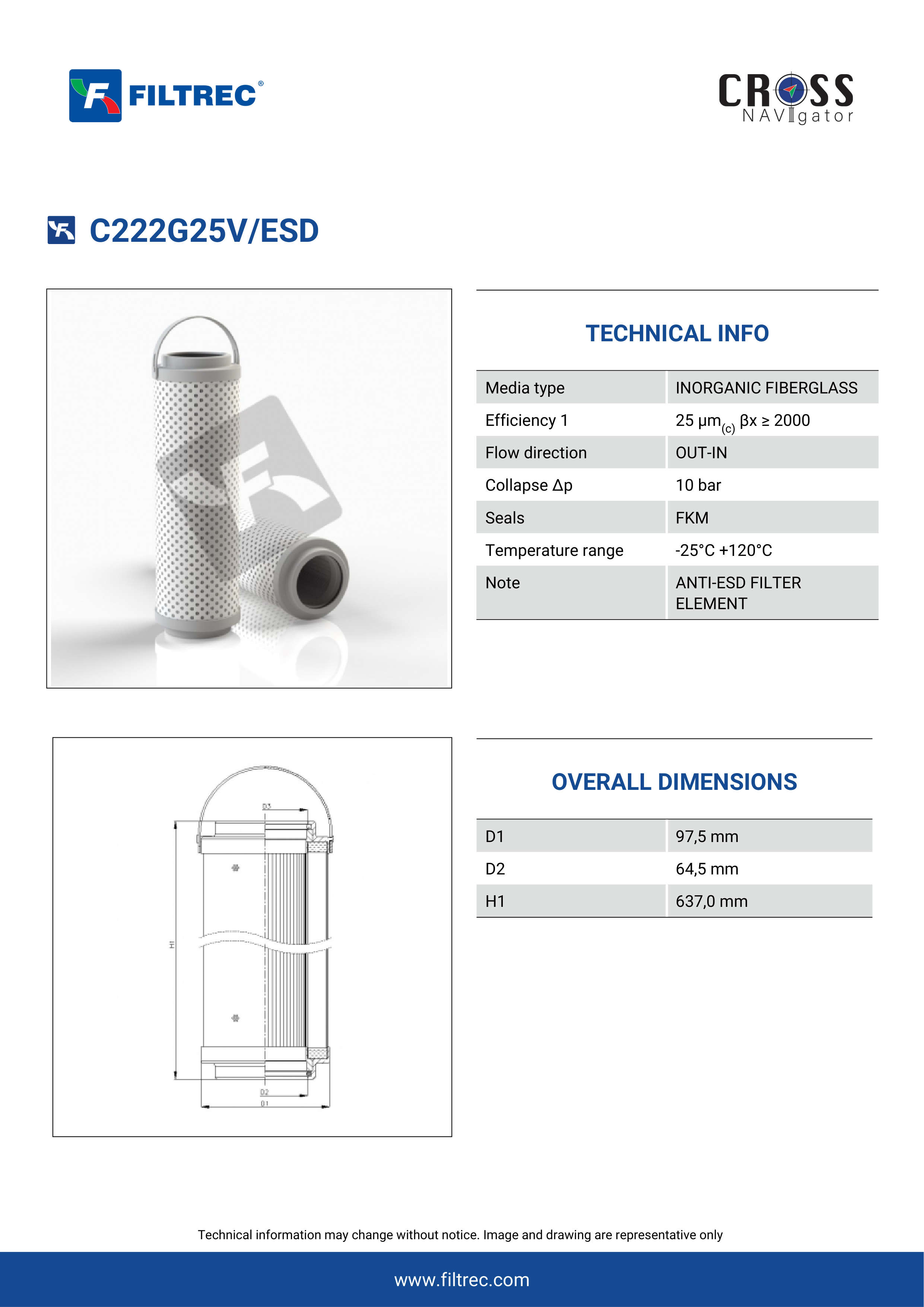 The efficiency of the element is shown using the Micron (µ) and Beta (β) ratings. The micron rating indicates the size of the particle being filtered and the beta rating the efficiency, calculated as 1/β.