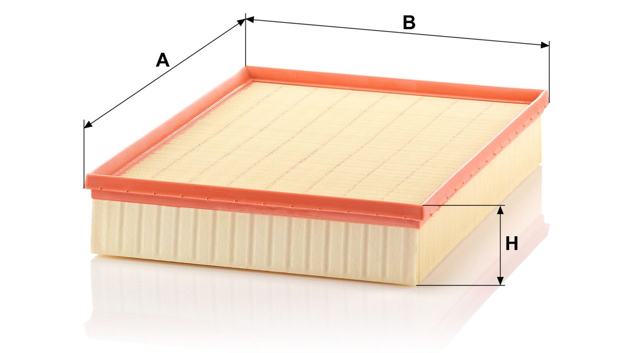 High-quality MANN-FILTER air filters for clean air intake and optimum protection for your engine, mass air flow sensor & other sensitive components / They meet requirements of modern engine technology. Highest dirt holding capacity and dirt separation efficiency, low flow resistance and high pleat stability ensure functional reliability during the entire service interval.
