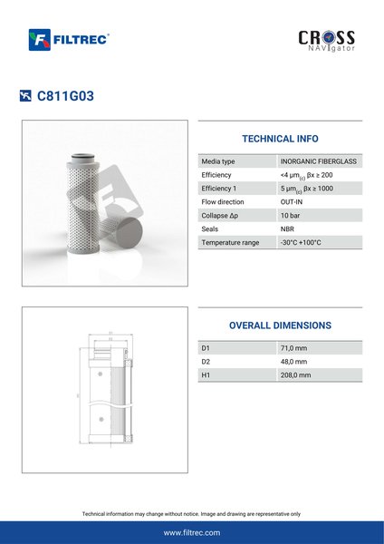 Engineered with their high performance media and a durable design, the C811G03 provides reliable and consistent performance over its lifespan, even in harsh operating environments. When you order from FilterFinder, you can trust that you are getting a reliable and high-quality replacement filter that will keep your system running smoothly.