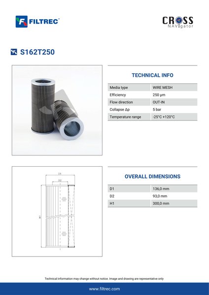 The efficiency of the element is shown using the Micron (µ) and Beta (β) ratings. The micron rating indicates the size of the particle being filtered and the beta rating the efficiency, calculated as 1/β.