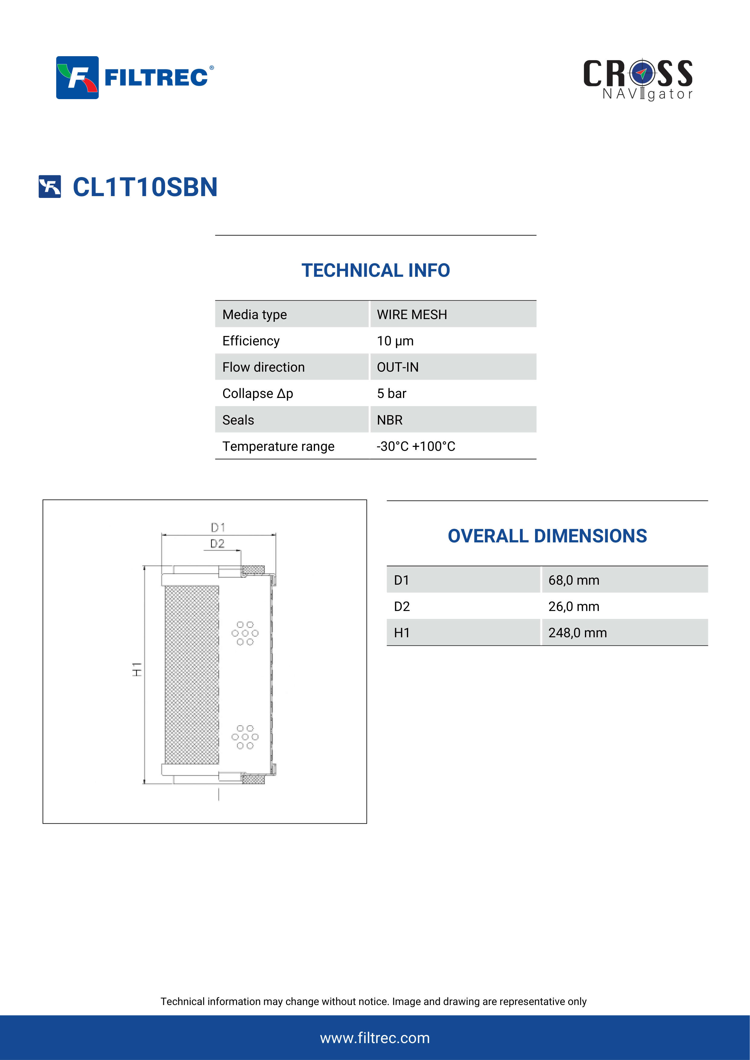 Genuine Filtrec CL1T10SBN. This Filtrec element is designed to meet or exceed the quality and performance of brand OEM’s ensuring superior filtration performance and long-lasting durability.