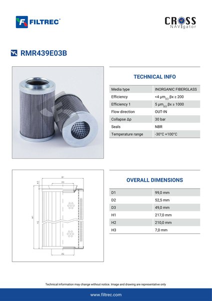 Genuine Filtrec RMR439E03B. This Filtrec element is designed to meet or exceed the quality and performance of brand OEM’s ensuring superior filtration performance and long-lasting durability.