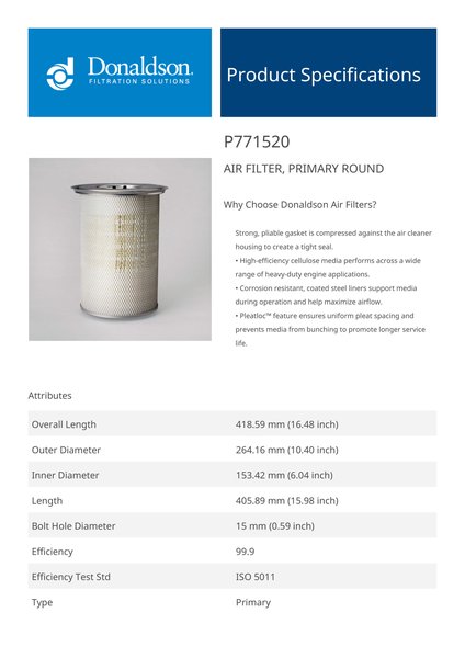 The efficiency of the element is shown using the Micron (µ) and Beta (β) ratings. The micron rating indicates the size of the particle being filtered and the beta rating the efficiency, calculated as 1/β.