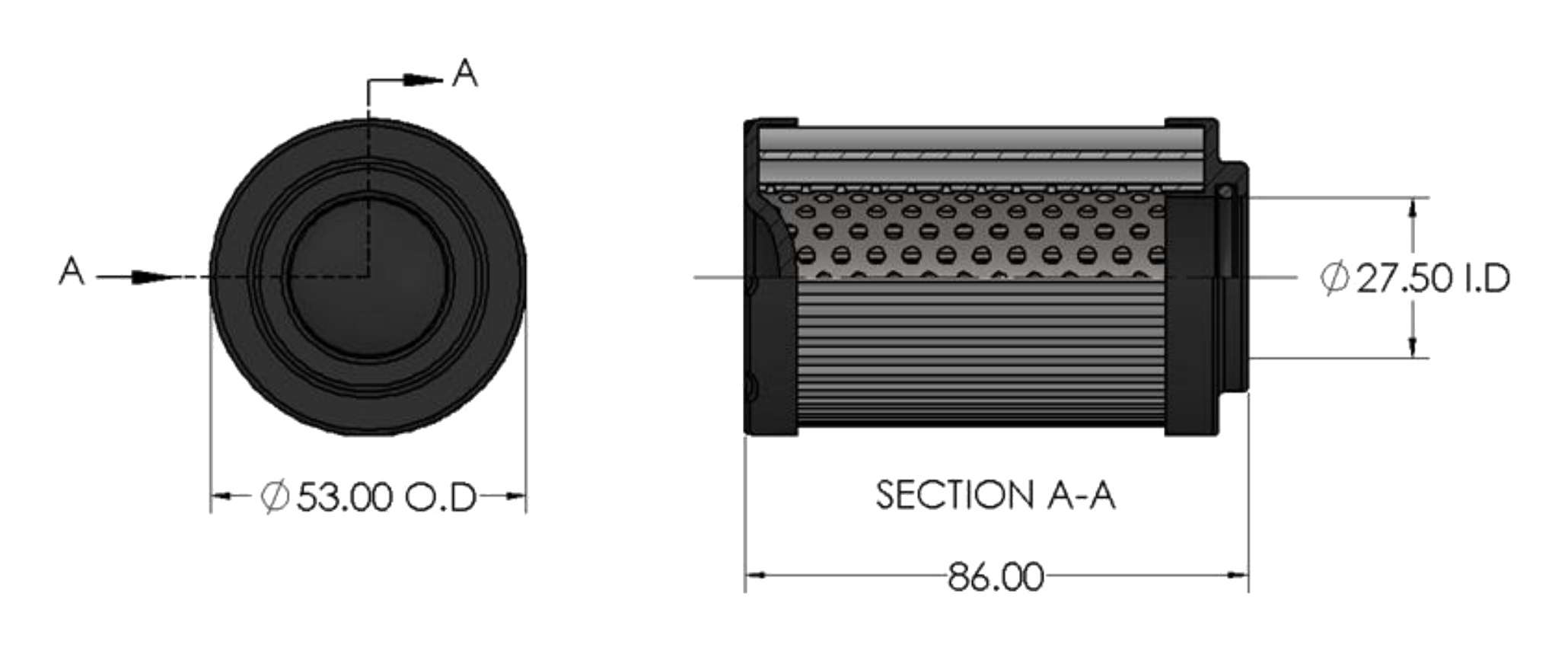 The efficiency of the element is shown using the Micron (µ) and Beta (β) ratings. The micron rating indicates the size of the particle being filtered and the beta rating the efficiency, calculated as 1/β.