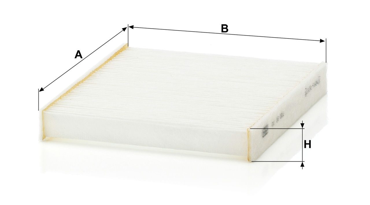 High-quality MANN-FILTER cabin filters offer almost 100% protection against particles such as pollen, diesel soot and tyre abrasion - for a feel-good climate in the vehicle interior and protection of the air conditioning system. Exact fit and perfect tightness ensure constant filtration performance during the entire service interval / Optimum vehicle interior ventilation due to the high air flow capacity.Specification