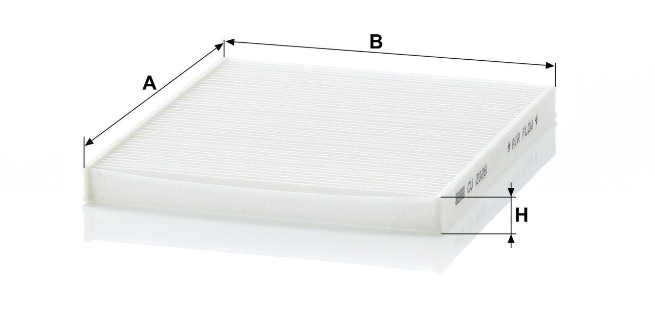 High-quality MANN-FILTER cabin filters offer almost 100% protection against particles such as pollen, diesel soot and tyre abrasion - for a feel-good climate in the vehicle interior and protection of the air conditioning system. Exact fit and perfect tightness ensure constant filtration performance during the entire service interval / Optimum vehicle interior ventilation due to the high air flow capacity.Specification