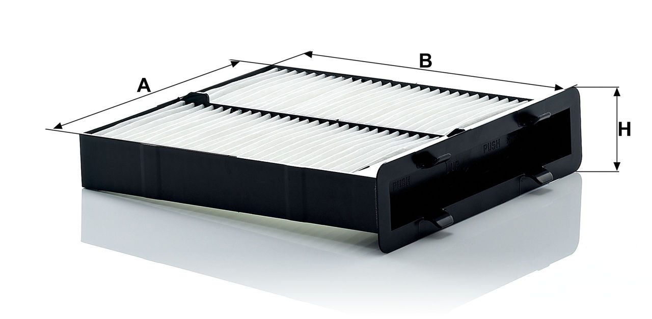 High-quality MANN-FILTER cabin filters offer almost 100% protection against particles such as pollen, diesel soot and tyre abrasion - for a feel-good climate in the vehicle interior and protection of the air conditioning system. Exact fit and perfect tightness ensure constant filtration performance during the entire service interval / Optimum vehicle interior ventilation due to the high air flow capacity.Specification