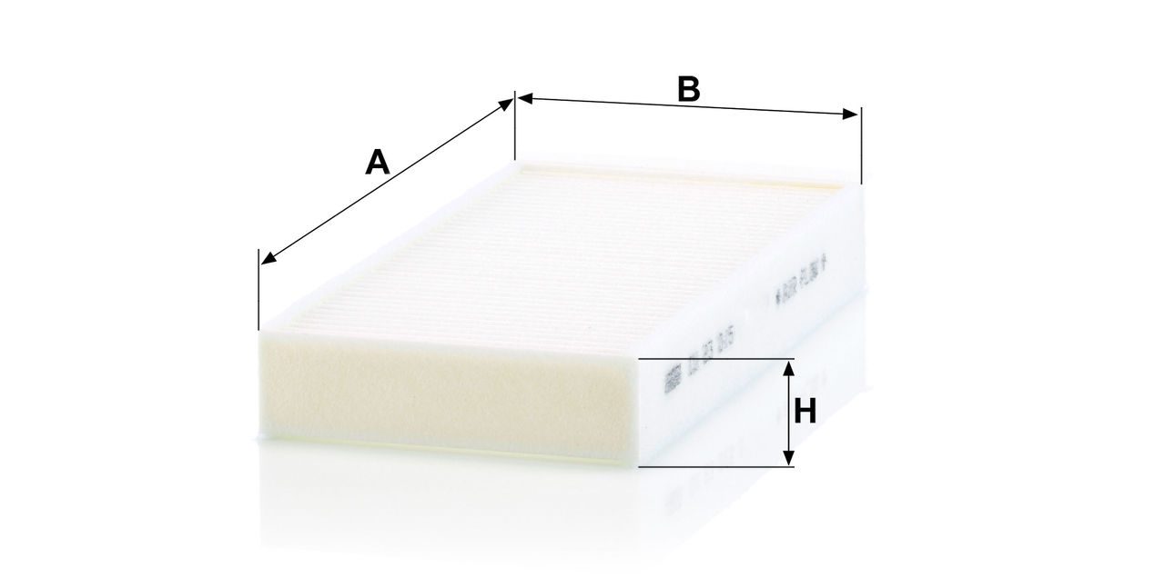 High-quality MANN-FILTER cabin filters offer almost 100% protection against particles such as pollen, diesel soot and tyre abrasion - for a feel-good climate in the vehicle interior and protection of the air conditioning system. Exact fit and perfect tightness ensure constant filtration performance during the entire service interval / Optimum vehicle interior ventilation due to the high air flow capacity.