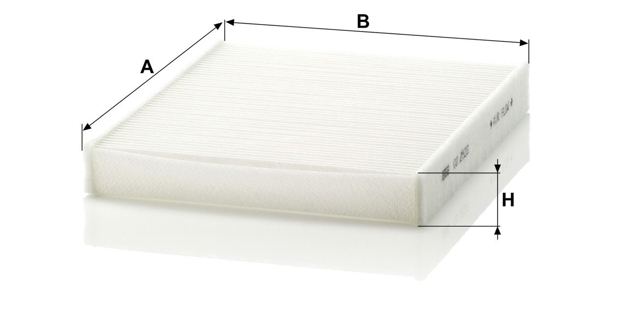 High-quality MANN-FILTER cabin filters offer almost 100% protection against particles such as pollen, diesel soot and tyre abrasion - for a feel-good climate in the vehicle interior and protection of the air conditioning system. Exact fit and perfect tightness ensure constant filtration performance during the entire service interval / Optimum vehicle interior ventilation due to the high air flow capacity.
