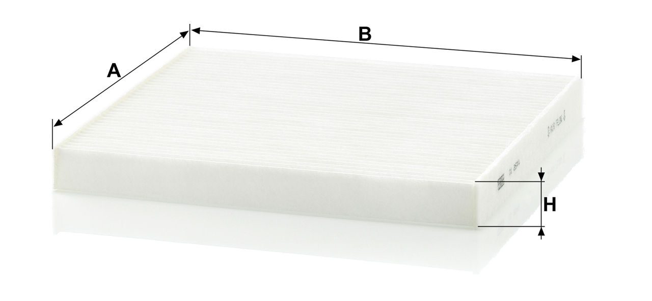 High-quality MANN-FILTER cabin filters offer almost 100% protection against particles such as pollen, diesel soot and tyre abrasion - for a feel-good climate in the vehicle interior and protection of the air conditioning system. Exact fit and perfect tightness ensure constant filtration performance during the entire service interval / Optimum vehicle interior ventilation due to the high air flow capacity.Specification