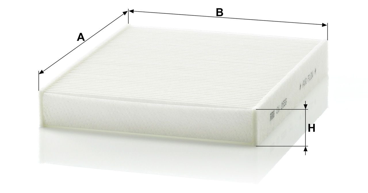 High-quality MANN-FILTER cabin filters offer almost 100% protection against particles such as pollen, diesel soot and tyre abrasion - for a feel-good climate in the vehicle interior and protection of the air conditioning system. Exact fit and perfect tightness ensure constant filtration performance during the entire service interval / Optimum vehicle interior ventilation due to the high air flow capacity.