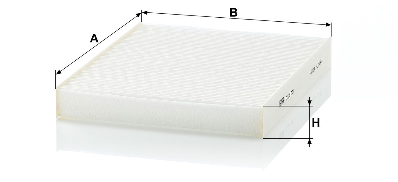High-quality MANN-FILTER cabin filters offer almost 100% protection against particles such as pollen, diesel soot and tyre abrasion - for a feel-good climate in the vehicle interior and protection of the air conditioning system. Exact fit and perfect tightness ensure constant filtration performance during the entire service interval / Optimum vehicle interior ventilation due to the high air flow capacity.