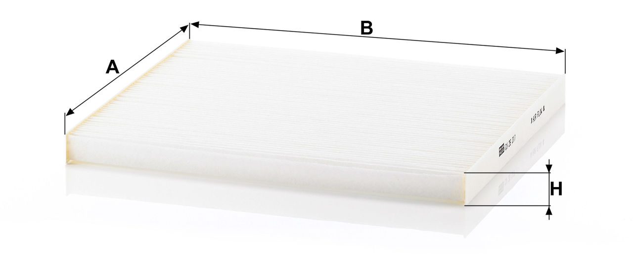 High-quality MANN-FILTER cabin filters offer almost 100% protection against particles such as pollen, diesel soot and tyre abrasion - for a feel-good climate in the vehicle interior and protection of the air conditioning system. Exact fit and perfect tightness ensure constant filtration performance during the entire service interval / Optimum vehicle interior ventilation due to the high air flow capacity.Specification