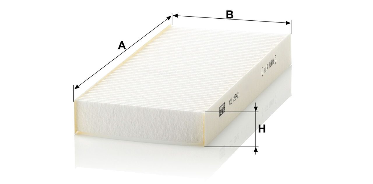 High-quality MANN-FILTER cabin filters offer almost 100% protection against particles such as pollen, diesel soot and tyre abrasion - for a feel-good climate in the vehicle interior and protection of the air conditioning system. Exact fit and perfect tightness ensure constant filtration performance during the entire service interval / Optimum vehicle interior ventilation due to the high air flow capacity.Specification