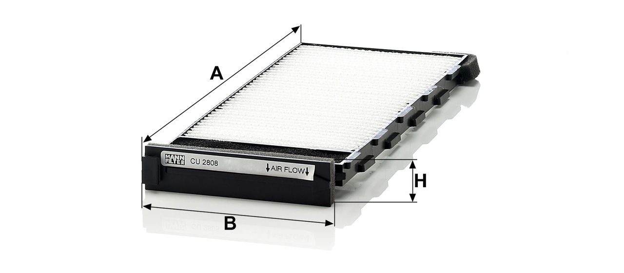High-quality MANN-FILTER cabin filters offer almost 100% protection against particles such as pollen, diesel soot and tyre abrasion - for a feel-good climate in the vehicle interior and protection of the air conditioning system. Exact fit and perfect tightness ensure constant filtration performance during the entire service interval / Optimum vehicle interior ventilation due to the high air flow capacity.
