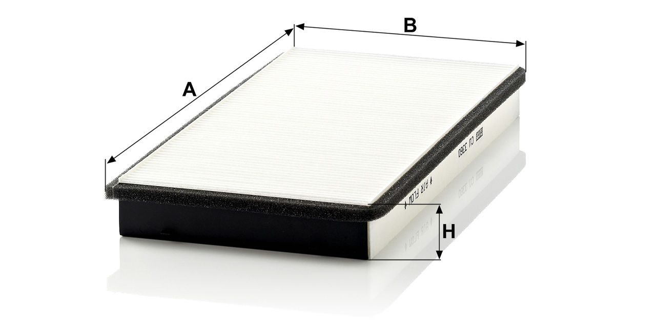 High-quality MANN-FILTER cabin filters offer almost 100% protection against particles such as pollen, diesel soot and tyre abrasion - for a feel-good climate in the vehicle interior and protection of the air conditioning system. Exact fit and perfect tightness ensure constant filtration performance during the entire service interval / Optimum vehicle interior ventilation due to the high air flow capacity.