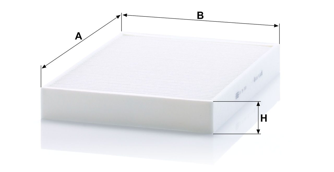 High-quality MANN-FILTER cabin filters offer almost 100% protection against particles such as pollen, diesel soot and tyre abrasion - for a feel-good climate in the vehicle interior and protection of the air conditioning system. Exact fit and perfect tightness ensure constant filtration performance during the entire service interval / Optimum vehicle interior ventilation due to the high air flow capacity.