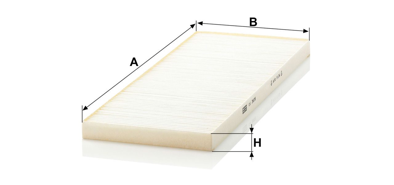 High-quality MANN-FILTER cabin filters offer almost 100% protection against particles such as pollen, diesel soot and tyre abrasion - for a feel-good climate in the vehicle interior and protection of the air conditioning system. Exact fit and perfect tightness ensure constant filtration performance during the entire service interval / Optimum vehicle interior ventilation due to the high air flow capacity.Specification