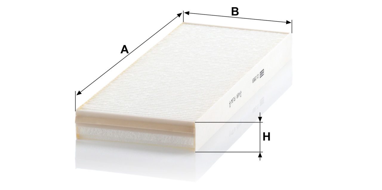 High-quality MANN-FILTER cabin filters offer almost 100% protection against particles such as pollen, diesel soot and tyre abrasion - for a feel-good climate in the vehicle interior and protection of the air conditioning system. Exact fit and perfect tightness ensure constant filtration performance during the entire service interval / Optimum vehicle interior ventilation due to the high air flow capacity.