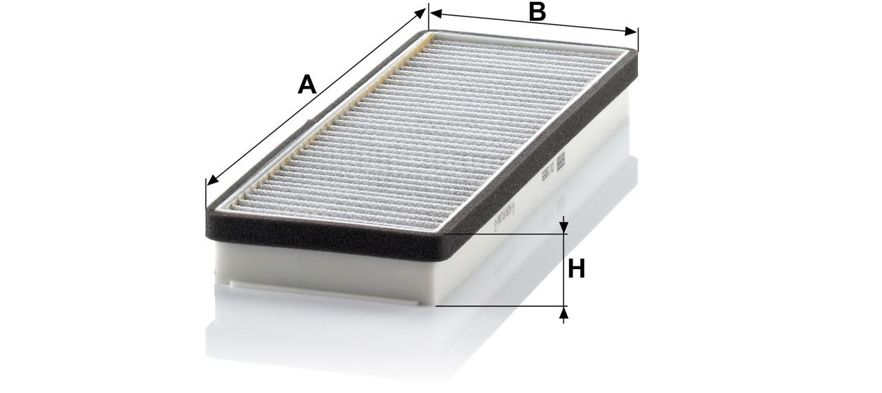 High-quality MANN-FILTER cabin filters offer almost 100% protection against particles such as pollen, diesel soot and tyre abrasion - for a feel-good climate in the vehicle interior and protection of the air conditioning system. Exact fit and perfect tightness ensure constant filtration performance during the entire service interval / Optimum vehicle interior ventilation due to the high air flow capacity.