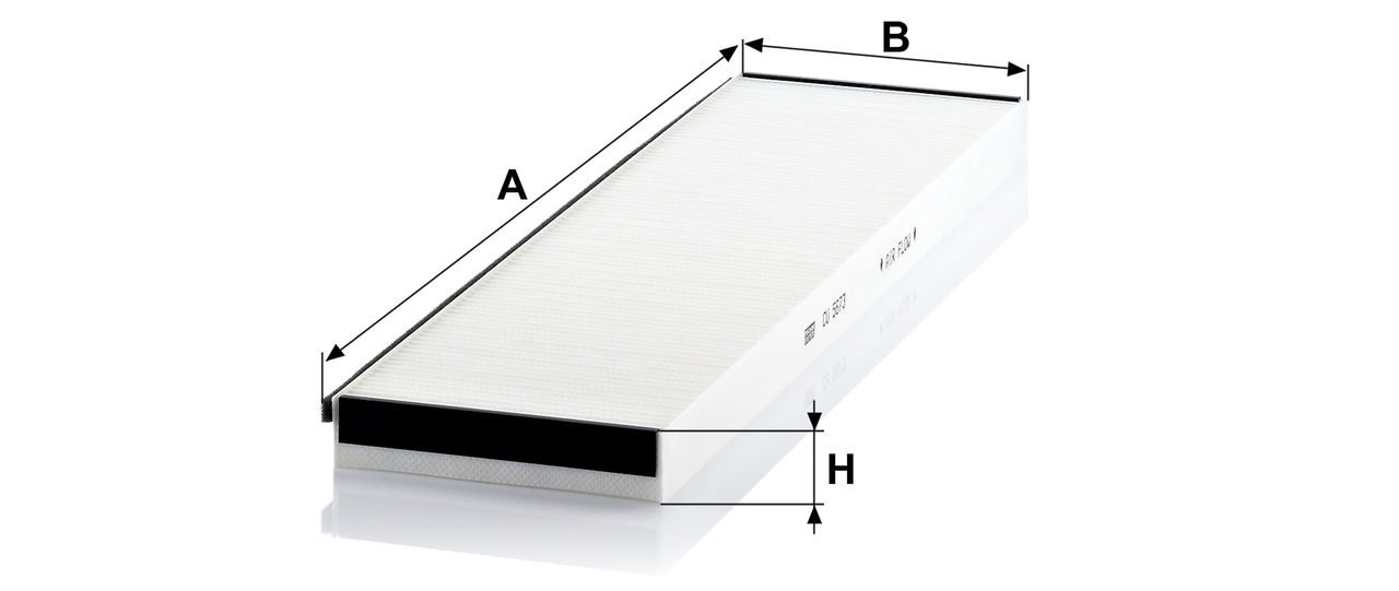 High-quality MANN-FILTER cabin filters offer almost 100% protection against particles such as pollen, diesel soot and tyre abrasion - for a feel-good climate in the vehicle interior and protection of the air conditioning system. Exact fit and perfect tightness ensure constant filtration performance during the entire service interval / Optimum vehicle interior ventilation due to the high air flow capacity.
