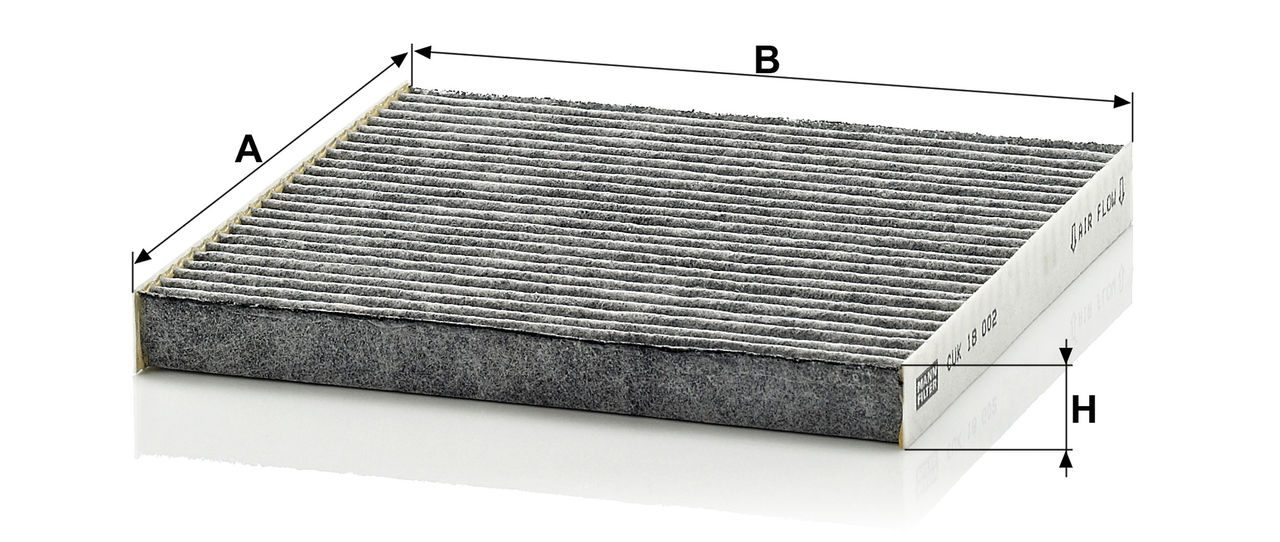 High-quality MANN-FILTER cabin filters with active carbon - nearly 100% protection from particles like pollen, diesel soot & tyre abrasion / Additional protection from harmful gases & unpleasant odour. The trated highly-effective activated carbon gives protection against harmful gases such as ozone, nitrogen oxide or sulphur dioxide and eliminates unpleasant odours during the entire service interval.