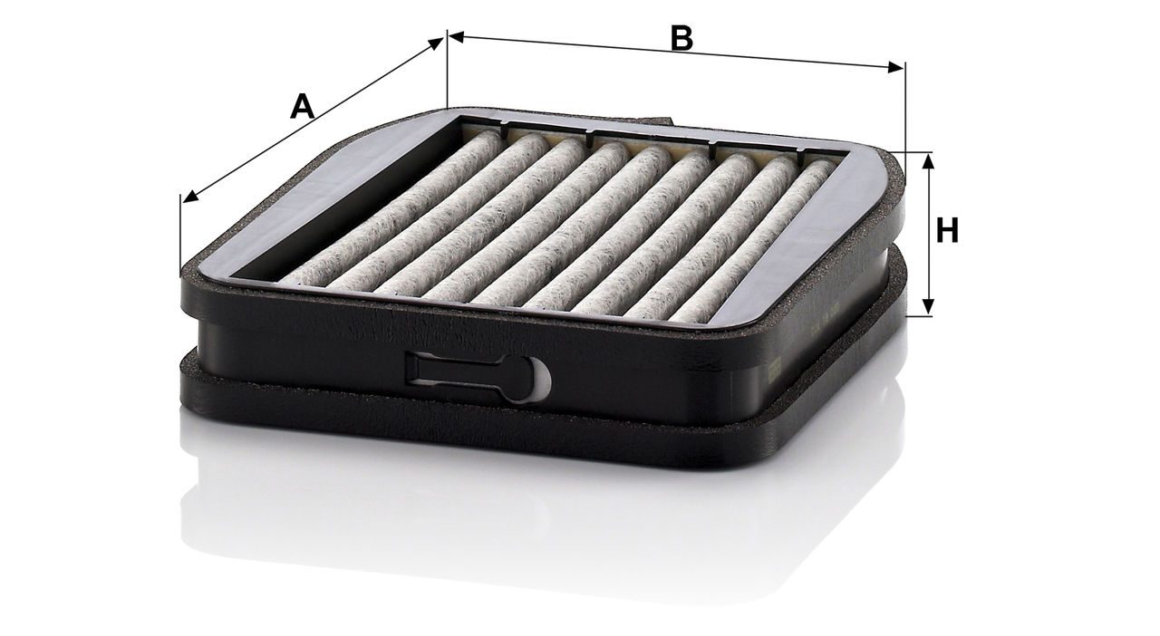 High-quality MANN-FILTER cabin filters with active carbon - nearly 100% protection from particles like pollen, diesel soot & tyre abrasion / Additional protection from harmful gases & unpleasant odour. The trated highly-effective activated carbon gives protection against harmful gases such as ozone, nitrogen oxide or sulphur dioxide and eliminates unpleasant odours during the entire service interval.