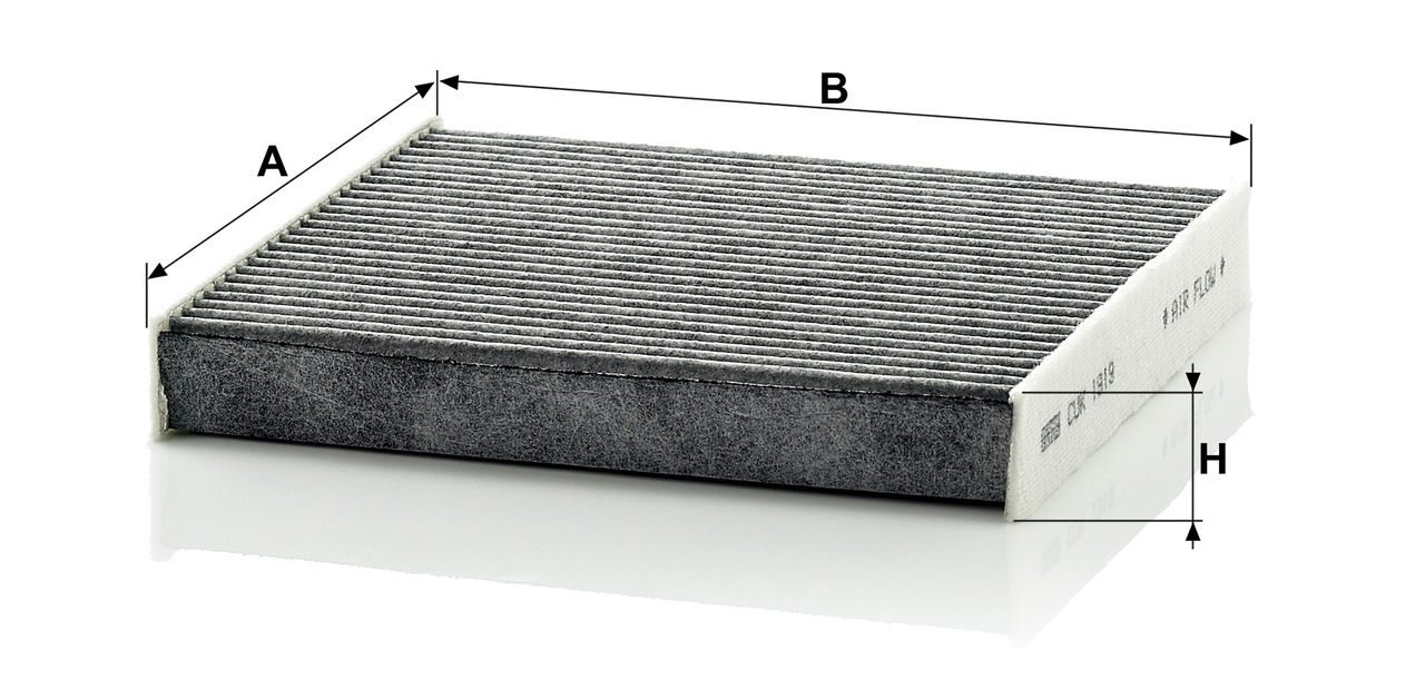 High-quality MANN-FILTER cabin filters with active carbon - nearly 100% protection from particles like pollen, diesel soot & tyre abrasion / Additional protection from harmful gases & unpleasant odour. The trated highly-effective activated carbon gives protection against harmful gases such as ozone, nitrogen oxide or sulphur dioxide and eliminates unpleasant odours during the entire service interval.