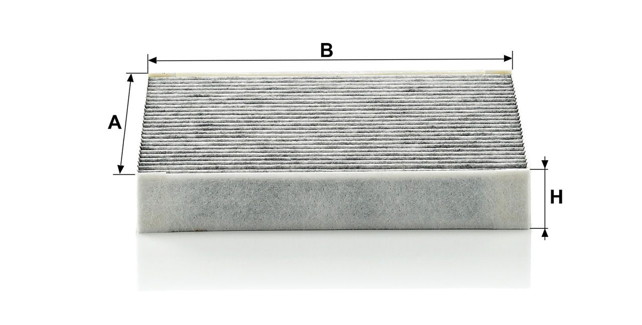 High-quality MANN-FILTER cabin filters with active carbon - nearly 100% protection from particles like pollen, diesel soot & tyre abrasion / Additional protection from harmful gases & unpleasant odour. The trated highly-effective activated carbon gives protection against harmful gases such as ozone, nitrogen oxide or sulphur dioxide and eliminates unpleasant odours during the entire service interval.