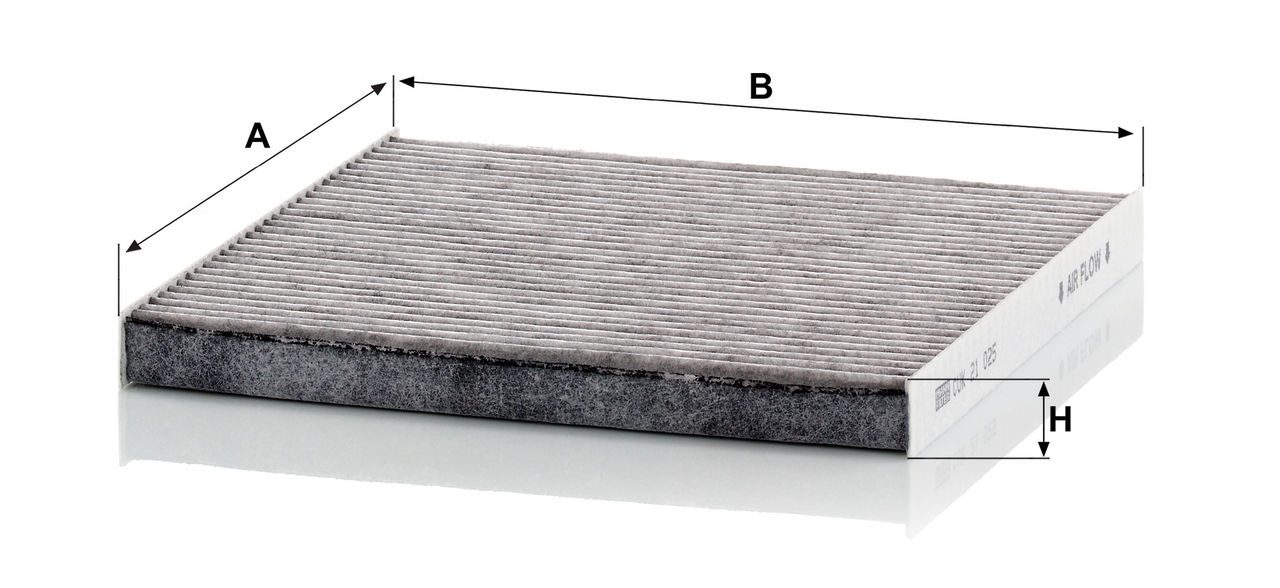 High-quality MANN-FILTER cabin filters with active carbon - nearly 100% protection from particles like pollen, diesel soot & tyre abrasion / Additional protection from harmful gases & unpleasant odour. The trated highly-effective activated carbon gives protection against harmful gases such as ozone, nitrogen oxide or sulphur dioxide and eliminates unpleasant odours during the entire service interval.