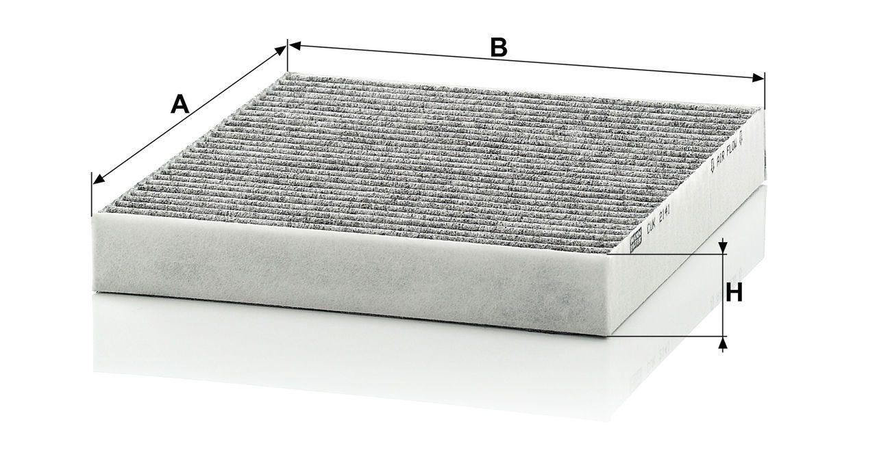 High-quality MANN-FILTER cabin filters with active carbon - nearly 100% protection from particles like pollen, diesel soot & tyre abrasion / Additional protection from harmful gases & unpleasant odour. The trated highly-effective activated carbon gives protection against harmful gases such as ozone, nitrogen oxide or sulphur dioxide and eliminates unpleasant odours during the entire service interval.