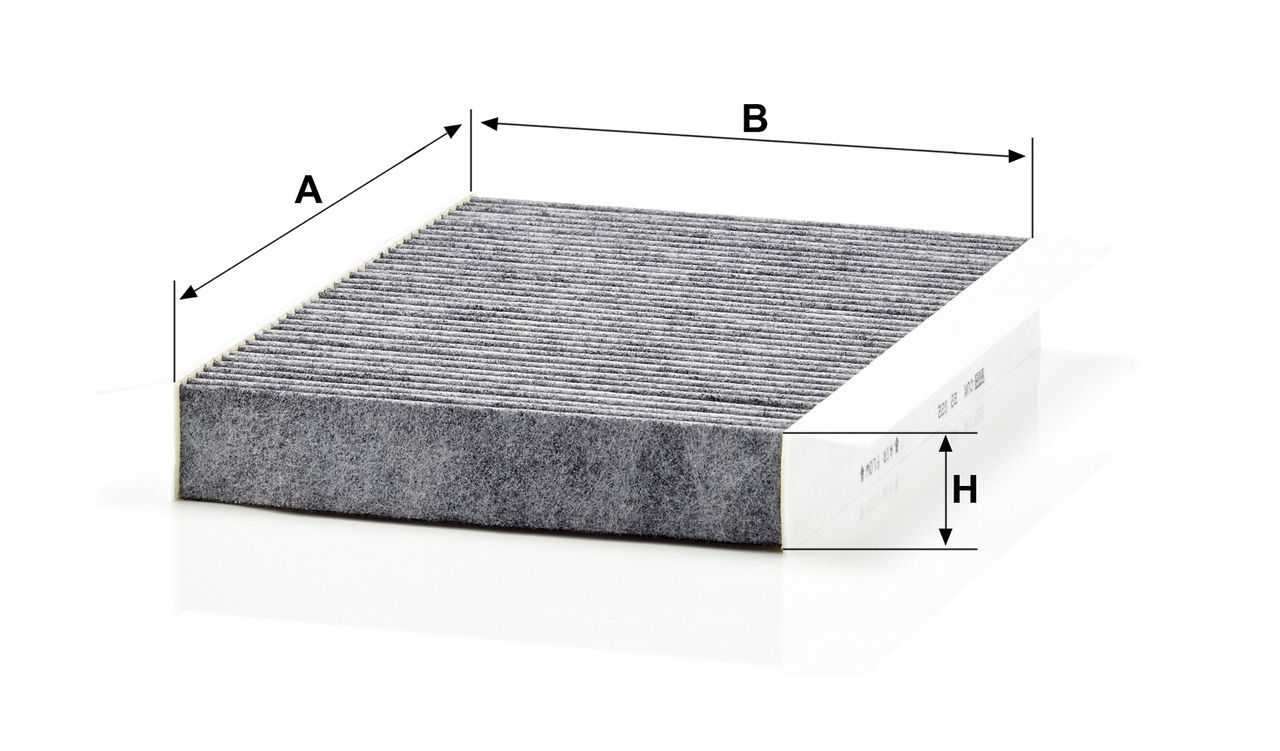 High-quality MANN-FILTER cabin filters with active carbon - nearly 100% protection from particles like pollen, diesel soot & tyre abrasion / Additional protection from harmful gases & unpleasant odour. The trated highly-effective activated carbon gives protection against harmful gases such as ozone, nitrogen oxide or sulphur dioxide and eliminates unpleasant odours during the entire service interval.