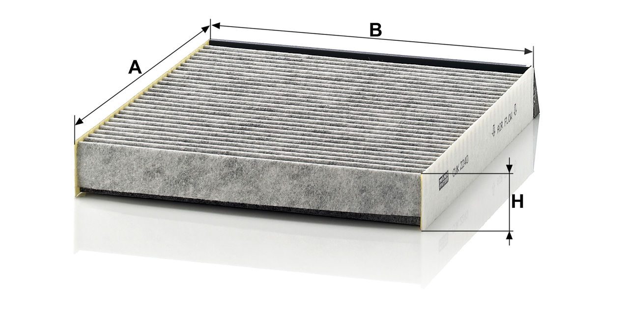 High-quality MANN-FILTER cabin filters with active carbon - nearly 100% protection from particles like pollen, diesel soot & tyre abrasion / Additional protection from harmful gases & unpleasant odour. The trated highly-effective activated carbon gives protection against harmful gases such as ozone, nitrogen oxide or sulphur dioxide and eliminates unpleasant odours during the entire service interval.