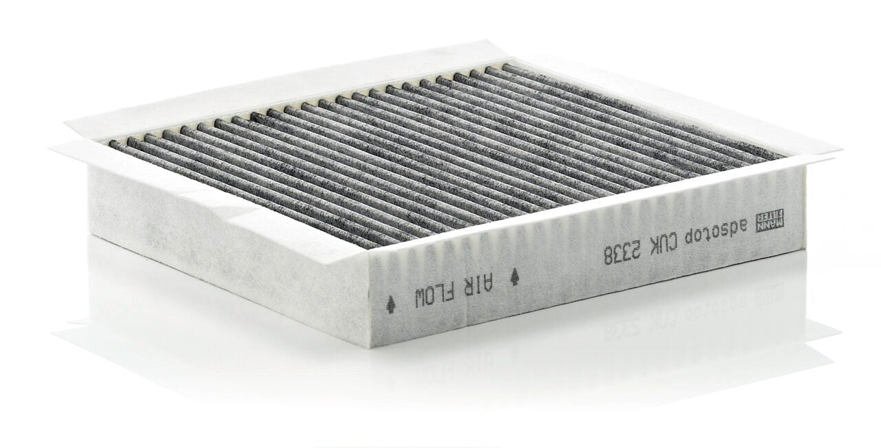High-quality MANN-FILTER cabin filters with active carbon - nearly 100% protection from particles like pollen, diesel soot & tyre abrasion / Additional protection from harmful gases & unpleasant odour. The trated highly-effective activated carbon gives protection against harmful gases such as ozone, nitrogen oxide or sulphur dioxide and eliminates unpleasant odours during the entire service interval.