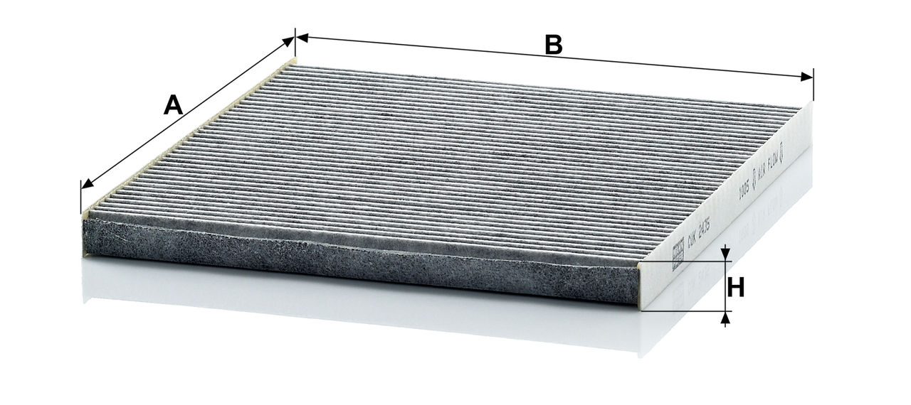 High-quality MANN-FILTER cabin filters with active carbon - nearly 100% protection from particles like pollen, diesel soot & tyre abrasion / Additional protection from harmful gases & unpleasant odour. The trated highly-effective activated carbon gives protection against harmful gases such as ozone, nitrogen oxide or sulphur dioxide and eliminates unpleasant odours during the entire service interval.Specification