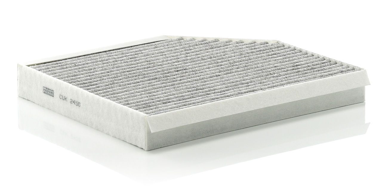 High-quality MANN-FILTER cabin filters with active carbon - nearly 100% protection from particles like pollen, diesel soot & tyre abrasion / Additional protection from harmful gases & unpleasant odour. The trated highly-effective activated carbon gives protection against harmful gases such as ozone, nitrogen oxide or sulphur dioxide and eliminates unpleasant odours during the entire service interval.