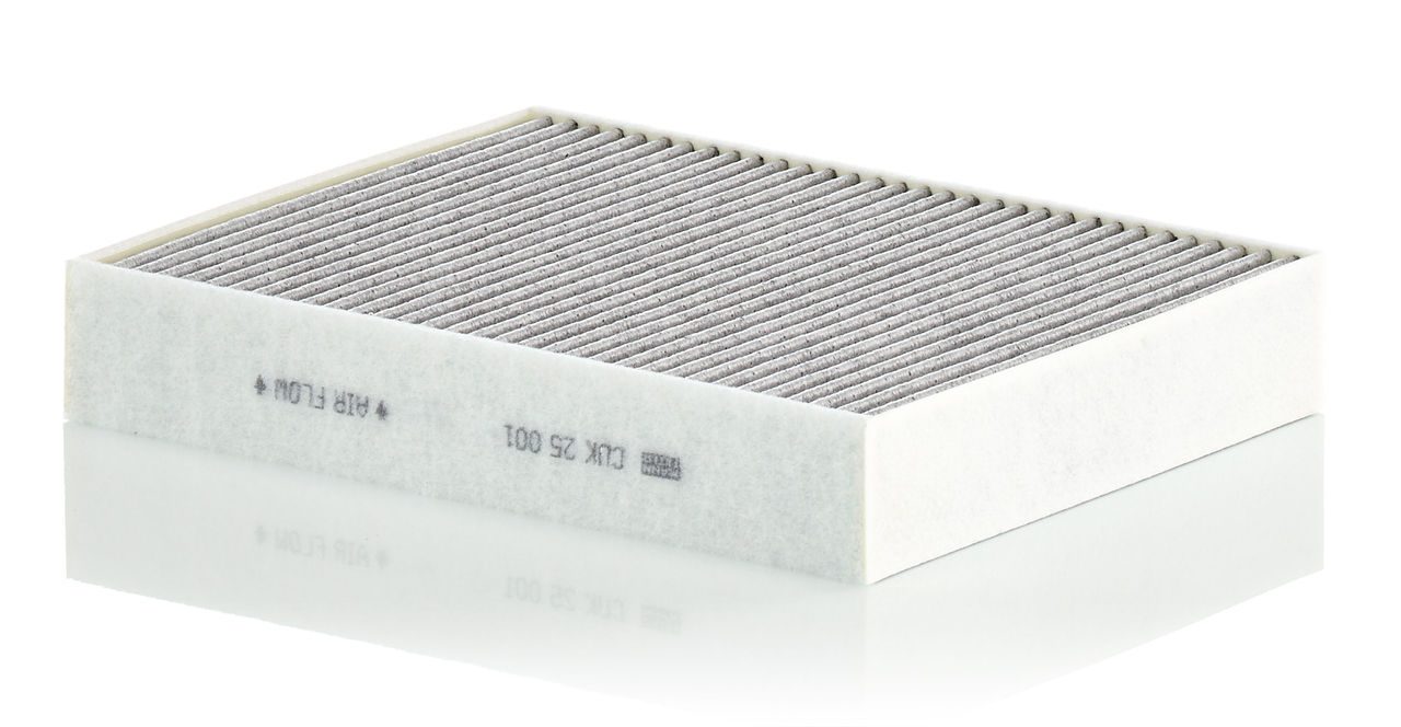 High-quality MANN-FILTER cabin filters with active carbon - nearly 100% protection from particles like pollen, diesel soot & tyre abrasion / Additional protection from harmful gases & unpleasant odour. The trated highly-effective activated carbon gives protection against harmful gases such as ozone, nitrogen oxide or sulphur dioxide and eliminates unpleasant odours during the entire service interval.