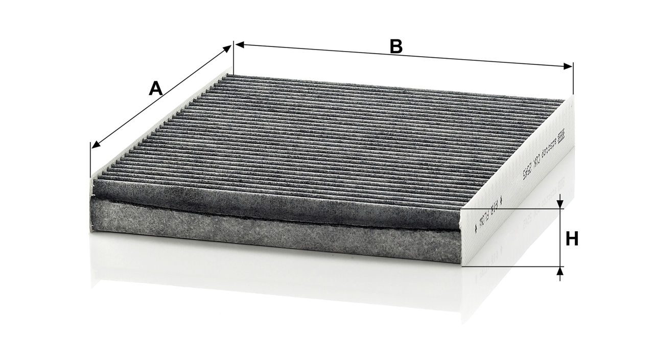 High-quality MANN-FILTER cabin filters with active carbon - nearly 100% protection from particles like pollen, diesel soot & tyre abrasion / Additional protection from harmful gases & unpleasant odour. The trated highly-effective activated carbon gives protection against harmful gases such as ozone, nitrogen oxide or sulphur dioxide and eliminates unpleasant odours during the entire service interval.Specification