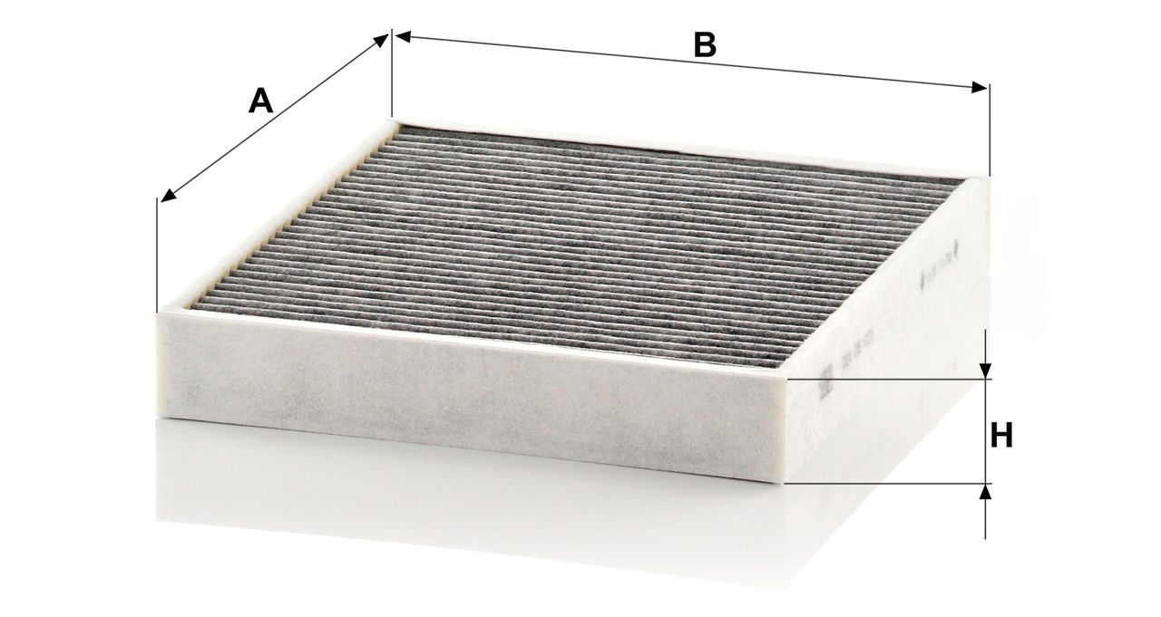 High-quality MANN-FILTER cabin filters with active carbon - nearly 100% protection from particles like pollen, diesel soot & tyre abrasion / Additional protection from harmful gases & unpleasant odour. The trated highly-effective activated carbon gives protection against harmful gases such as ozone, nitrogen oxide or sulphur dioxide and eliminates unpleasant odours during the entire service interval.Specification