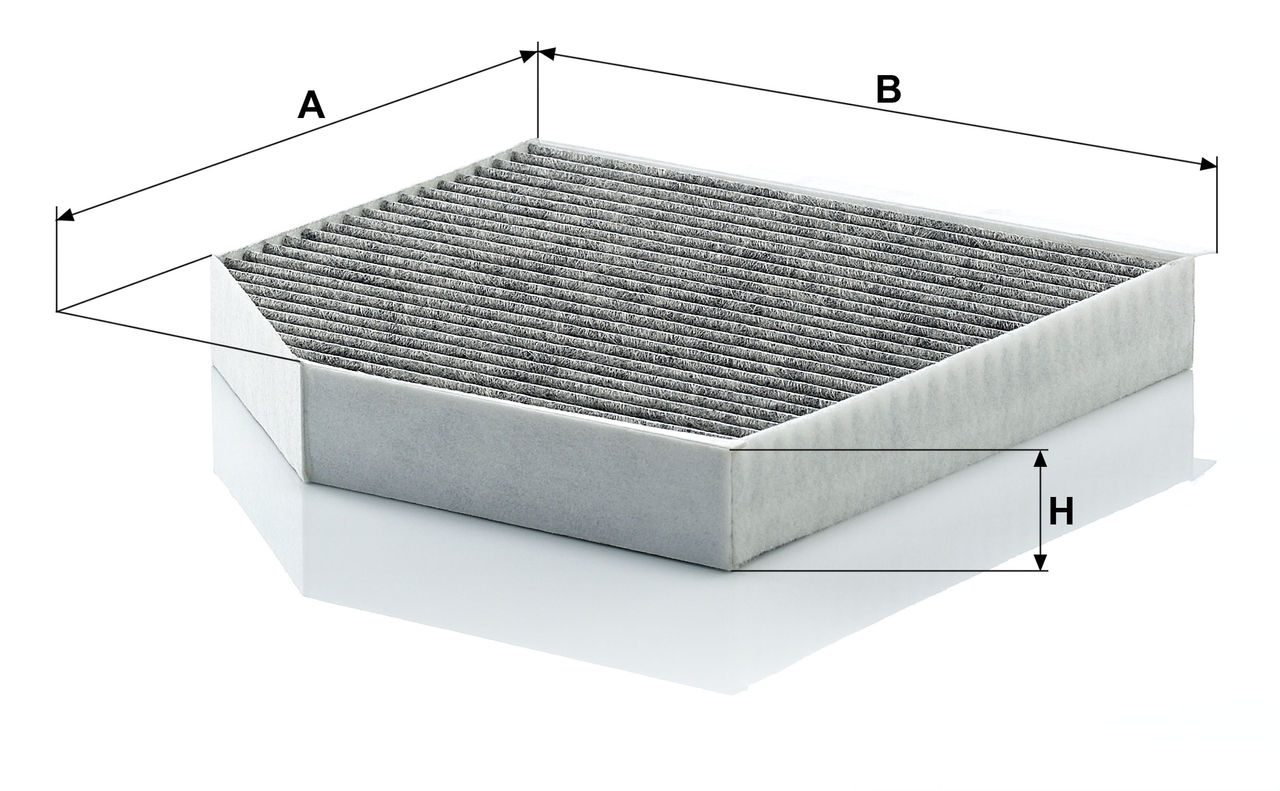 High-quality MANN-FILTER cabin filters with active carbon - nearly 100% protection from particles like pollen, diesel soot & tyre abrasion / Additional protection from harmful gases & unpleasant odour. The trated highly-effective activated carbon gives protection against harmful gases such as ozone, nitrogen oxide or sulphur dioxide and eliminates unpleasant odours during the entire service interval.Specification