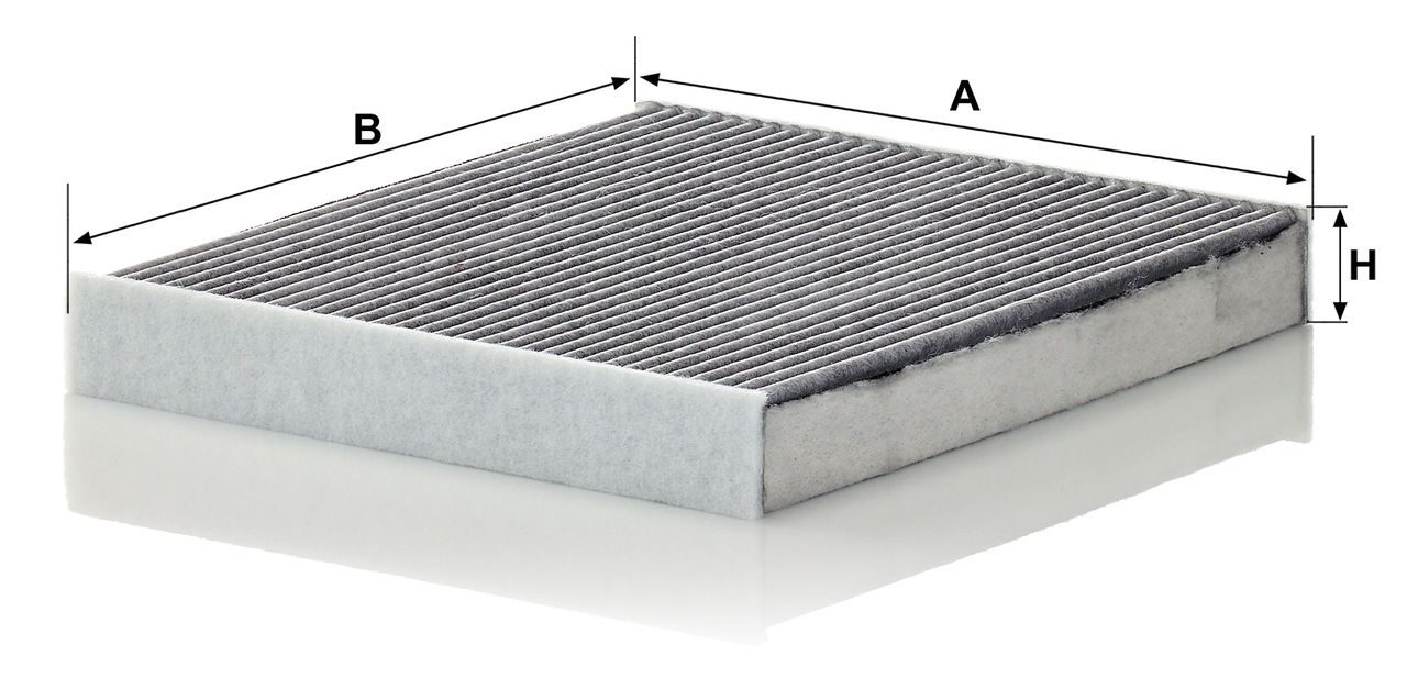 High-quality MANN-FILTER cabin filters with active carbon - nearly 100% protection from particles like pollen, diesel soot & tyre abrasion / Additional protection from harmful gases & unpleasant odour. The trated highly-effective activated carbon gives protection against harmful gases such as ozone, nitrogen oxide or sulphur dioxide and eliminates unpleasant odours during the entire service interval.Specification